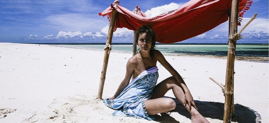 裏がパイル地になっているので、海から上がった冷えた体や強い日差しから保護してくれるビーチタオルやパレオとしても活用できます。タオル部分にはポケットが付いているので、財布や携帯電話などの小物を入れたまま肩からかけたり、腰に巻いて移動できる新しい旅のアイテムです。