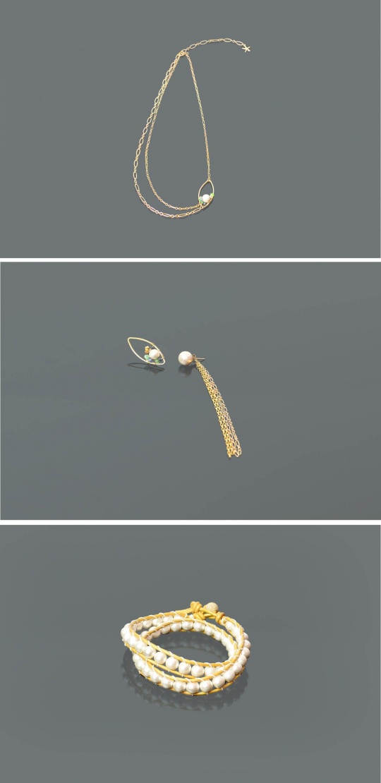コットンパールや天然石をあしらった