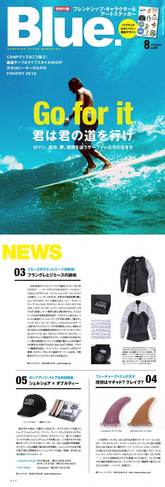 雑誌掲載情報/BLUE. 2016年8月#60号 にてFRANGLAIS × JIMMY'Zをご紹介いただきました